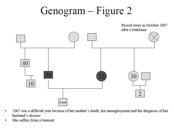 Building the genogram [8] in conjunction with the couple, as explained above, enables us to rapidly highlight the important features of their individual and common life story and eases the discussion on the advisability of the various options: