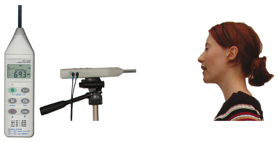 Equipment set-up for data collection: Sound level meter; standardised record. (Reprinted with permission from WEVOSYS.)