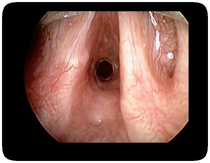 Direct laryngoscopy intraoperative view of subglottic stenosis in a patient with GPA (reprinted from Wolter NE, Ooi EH, Witterick IJ. Intralesional corticosteroid injection and dilatation provides effective management of subglottic stenosis in Wegener’s granulomatosis. Laryngoscope. 2010;120(12):2452–5. © 2010, with permission from John Wiley & Sons).