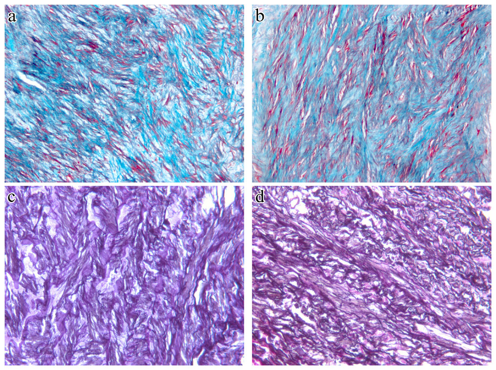 | Elastin (%) | 19.25 ± 2.73 | 17.48 ± 3.46 | 0.031 |