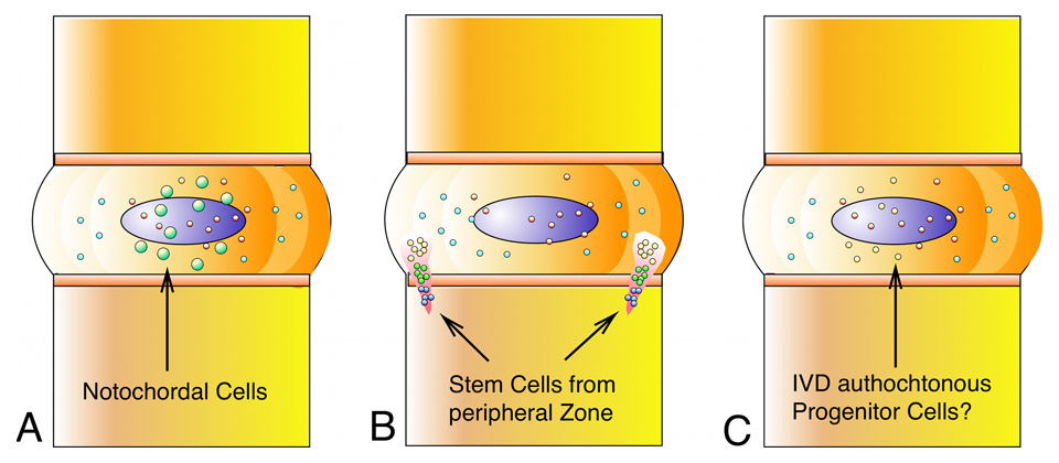 53 Gantenbein-Ritter B, Chan SC. The evolutionary importance of cell ratio between notochordal and nucleus pulposus cells: an experimental 3-D co-culture study. Eur Spine J. 2011; [epub ahead of print].