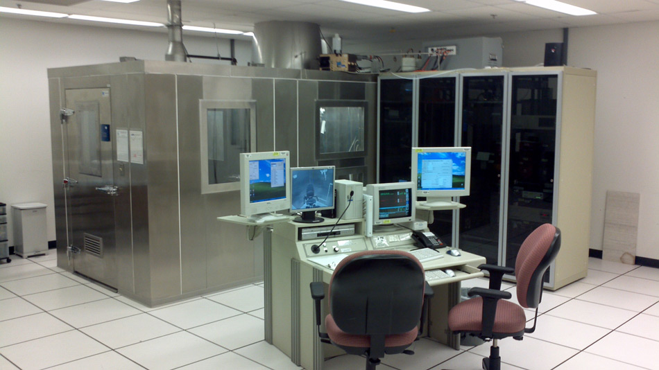 Controlled human exposures at the United States Environmental Protection Agency employ DE generated from an idling 6-cylinder, 205 hp, 5.9L-displacement diesel engine (fig. 1A) in a vehicle located outside of the Human Studies Facility (Chapel Hill, North Carolina). Diesel fuel is purchased as a certified fuel and the same lot is used for the duration of the study. DE is introduced into the exposure chamber (1.83 m x 1.83 m x 2.44 m) after a 1:30 dilution with clean and humidified air to yield a feedback-regulated concentration of 100 to 300 μg/m3 (fig. 1B). In the exposure chamber, the volunteer alternates between sitting (15 minutes) and exercising (15 minutes) on a recumbent bicycle ergometer for two hours. The chamber temperature and humidity are controlled to approximately 22 ± 2oC and 40 ± 10% respectively. DEP is controlled in real time using a tapered element oscillating microbalance to measure the chamber concentration. The particle number concentration and the number size distribution are also measured. The particle concentration is verified by weighing filters obtained using a versatile air pollution sampler. In addition to these measures of particle size and mass, environmental measurements are numerous during the exposure (table 2). Health endpoints routinely obtained before and after controlled human exposures can include symptoms (with a computerised questionnaire), changes in physical examination, indices in blood, urine, breath condensate, exhaled breath, sputum, and bronchoalveolar lavage. Pulmonary function tests, heart rate variability, and Holter exams can also be repeatedly performed before and after the exposure. Bronchoscopy is frequently included to obtain evidence of an effect by the DE.