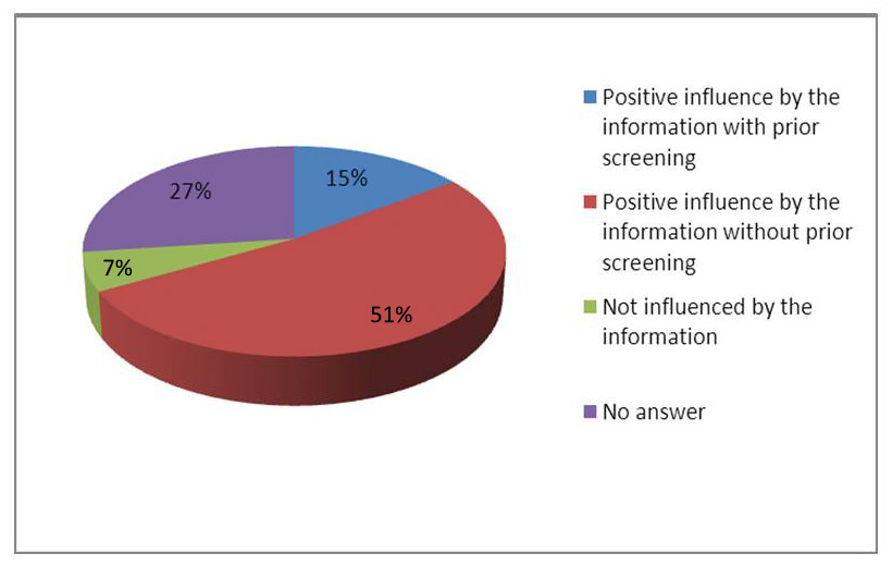 The vast majority of runners stated that our “on-site” prevention concept influenced their decision (n = 81, 65.9%) to consider a cardiac screening in the future (fig. 2). Of these athletes, 31 were already aware of SCD occurring during sports activities, while 50 (40.7% overall) heard of the issue for the very first time. Of the 31 athletes that were already aware of the issue, 16 (13.0% overall) nevertheless had never undergone a cardiac screening, but were convinced to do so in the future after having attended the prevention campaign prior to this race. Only a small minority of the participating athletes (6.5%; n = 8) felt that they had not been influenced positively by the information given to them during the “medical day”, while 27% (n = 33) didn’t answer that particular question. Participation in a longer distance race at the “Swiss Alpine Marathon” correlated with a positive acceptance towards a screening programme (ultra-marathon/marathon distance: 47% versus 20%).
