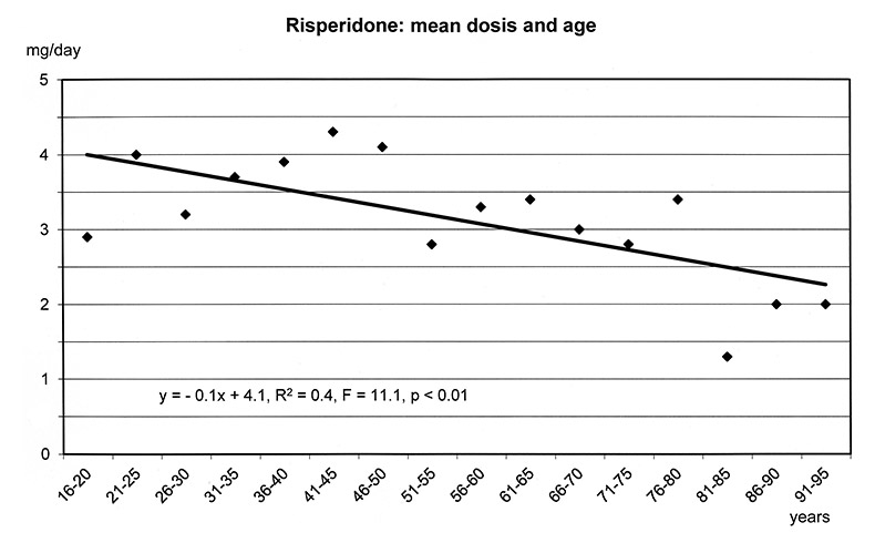 In addition, differences in dosages of medication could be a relevant factor. Young patients received higher doses that were associated with a higher frequency of ADRs. Indeed, our results clearly demonstrate that physicians reduce the dosages with increasing age of the patients (e.g., for olanzapine, quetiapine, and risperidone). The differences in the dosages of antipsychotics are presumably responsible for the decrease in EPMS symptoms with increasing age, an adverse effect known to be dose-dependent [14].