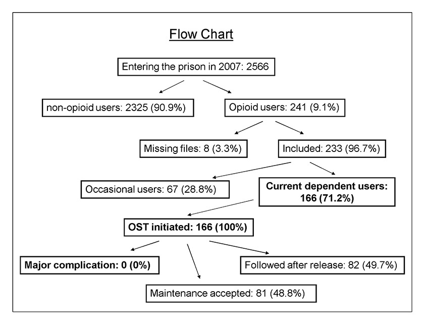 The aims of this study were to provide a detailed description of OST in our prison in adherence to accepted recommendations, and to confirm that such treatment is safe and feasible in the pretrial term. This study contributes to the body of literature on drug treatment in prison settings, as few studies have formally described such programmes.