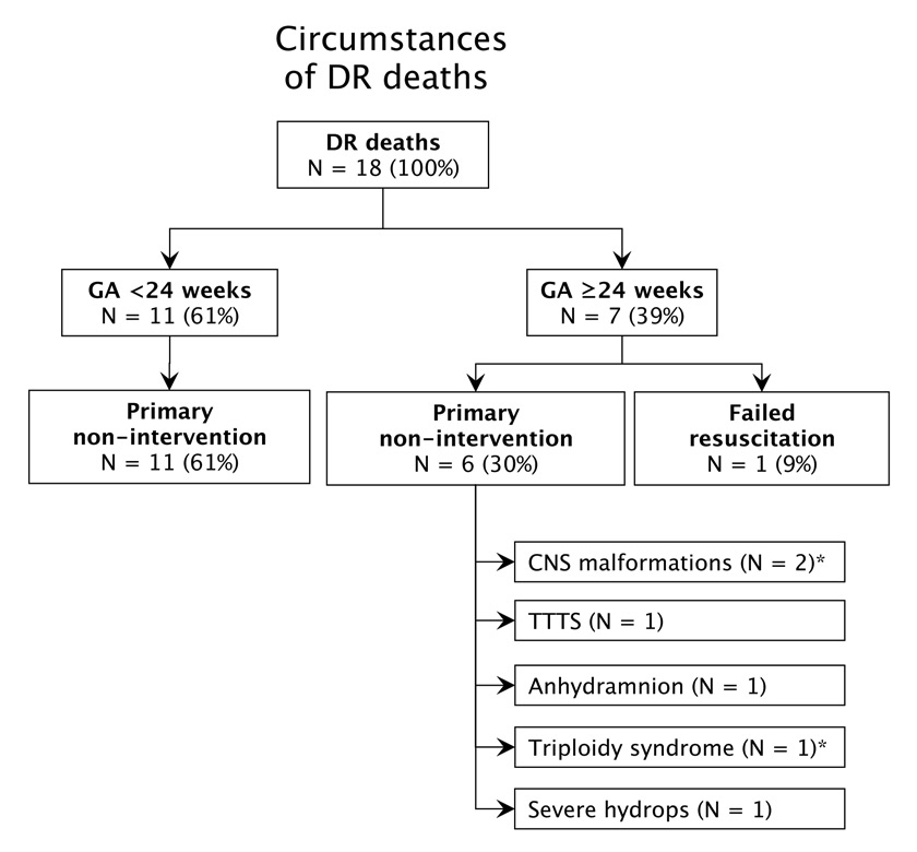 CNS = central nervous system; TTTS = twin-to-twin transfusion syndrome. * Late termination of pregnancy.