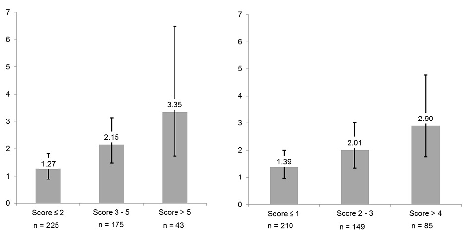 Unadjusted model | Ref. | 0.98 (0.76; 1.27) | 1.69 (1.33; 2.15) |
