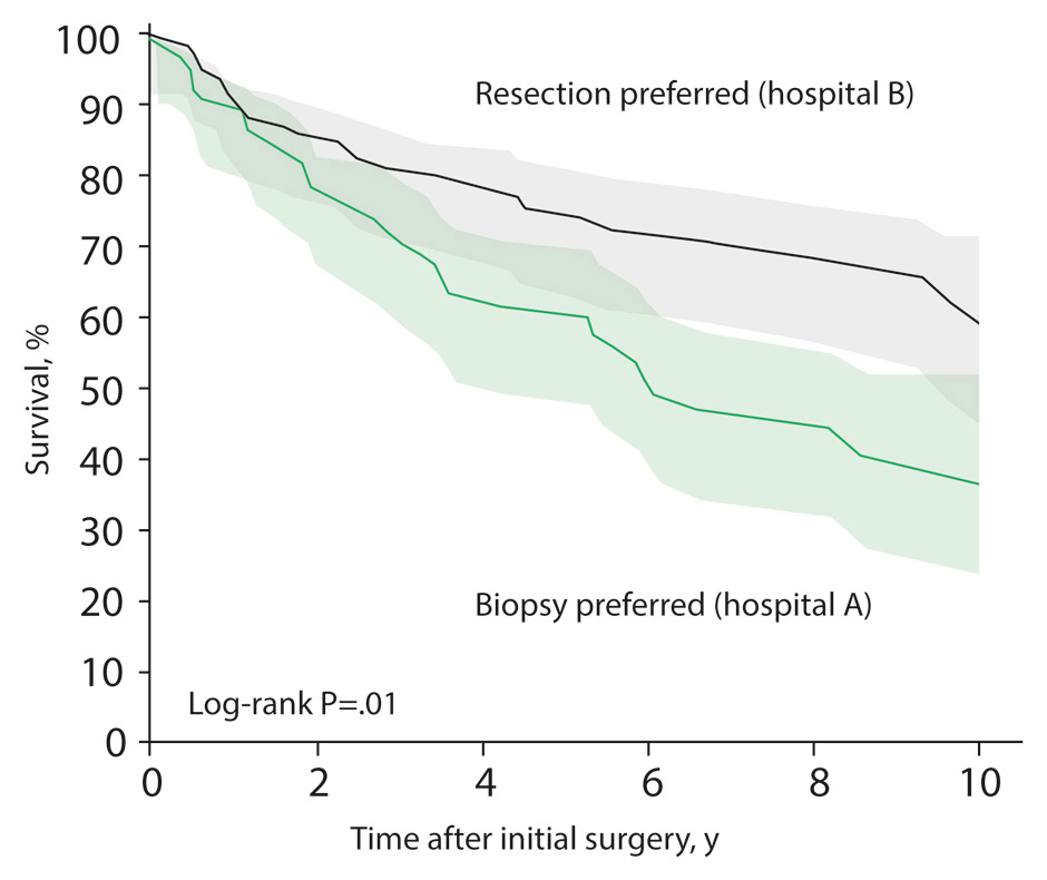 Patient survival according to hospital treatment strategy.