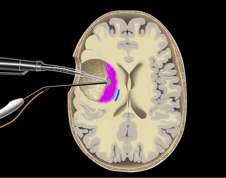 Example of a surgery for a lesion adjacent to eloquent tissue lesion.