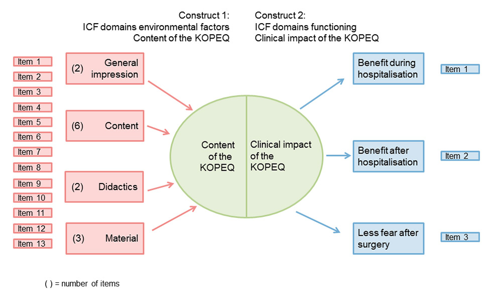 Feasibility and interpretability of administering the KOPEQ was conducted. Targeted patients answered questions on the comprehensibility of questions, the response options and the length of the KOPEQ. Using a think-aloud methodology (cognitive interview) [15], patients were also asked to formulate in words which benefits they expected to receive from the KOPEI during and after hospitalisation.