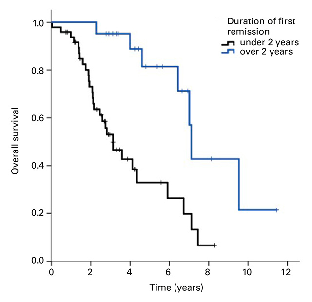 Other retrospective analyses have tried to find predictors of long-term outcome (table 5). Olson et al. reported that brain metastases and duration of first remission are prognostic factors [18]. Murthy et al. showed that hormone receptor status is a predictive factor [13].