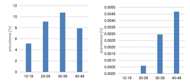 Figure 4 Prevalence of parenteral iron substitution in different age groups for both sexes in Switzerland, 2012 to 2014.