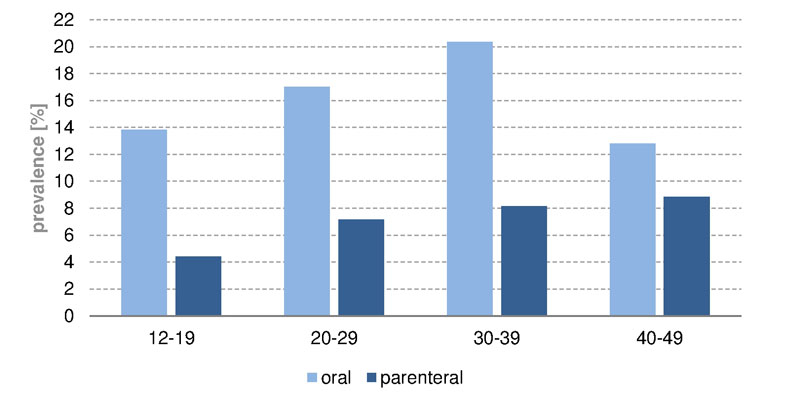 Figure 3 Prevalence of oral and parenteral iron substitution in different age groups in Switzerland, 2012 to 2014.