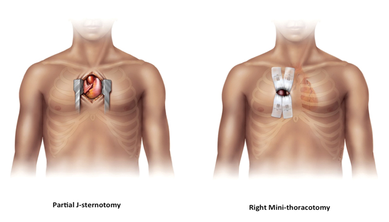 Figure 1 Demonstration of the two most common approaches through ministernotomy (image courtesy of Edwards Lifesciences Corporation).