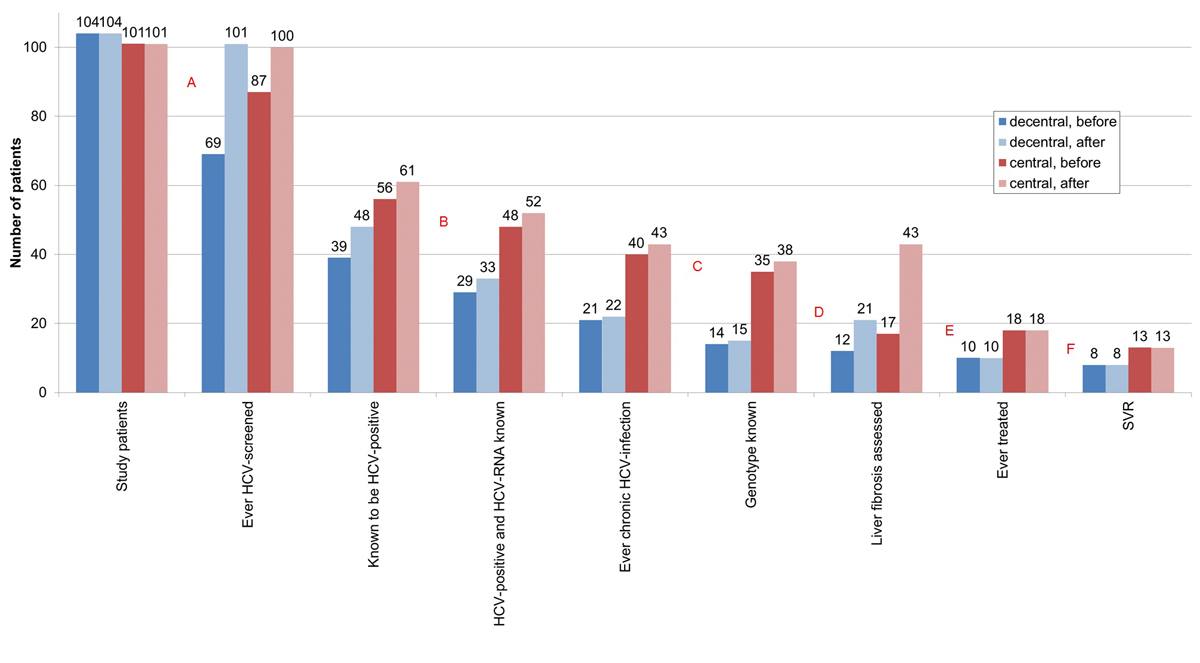 HCV = hepatitis C virus; SVR = sustained virological response; before = before HCV rapid tests and Fibroscan® within our study; after = after HCV–rapid tests and Fibroscan® within our study