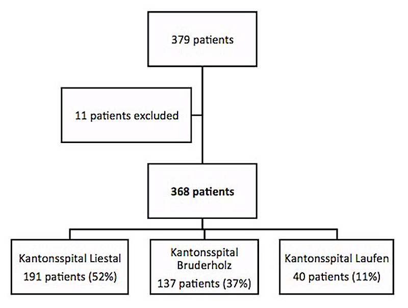 This study was conducted at the three acute care hospitals of the canton of Basel-Landschaft, namely the Kantonsspital Bruderholz, Liestal and Laufen (with a total of 934 in-hospital beds).