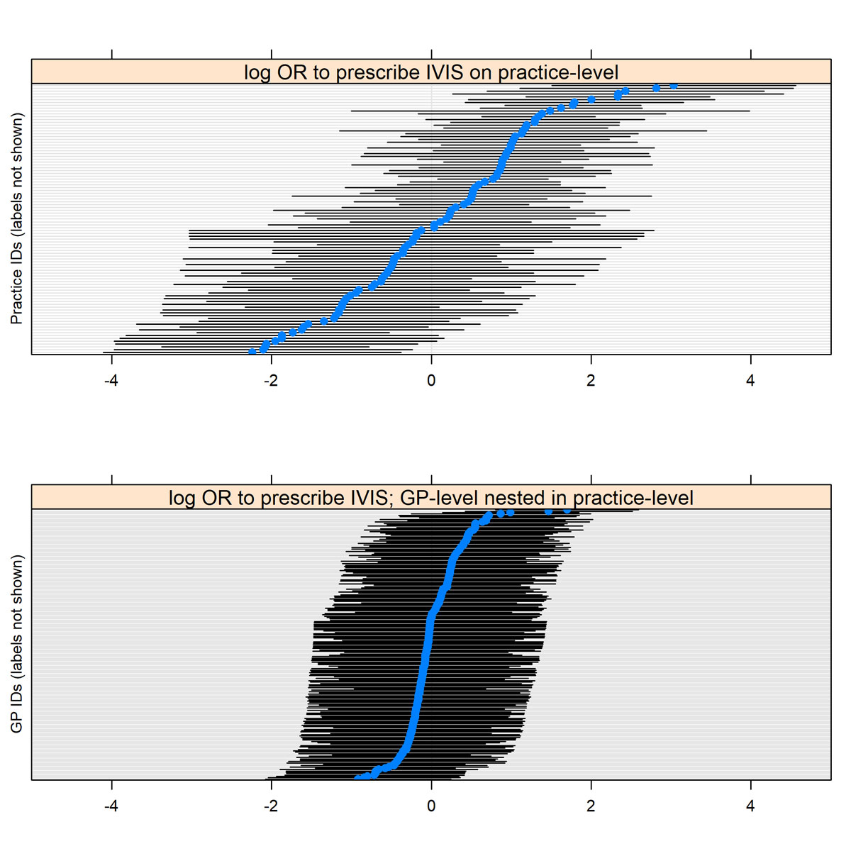 Multilevel adjustment for GPs nested in GP practices showed that there was a significant association on the level of GP practices with prescribing IVIS instead of OIS, but not on the level of individual GPs (see supplementary fig. S1 in appendix 1)