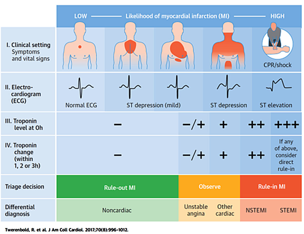 Adapted from Twerenbold et al. [4] with permission from the publisher. Twerenbold R, Boeddinghaus J, Nestelberger T, Wildi K, Rubini Gimenez M, Badertscher P, et al. Clinical Use of High-Sensitivity Cardiac Troponin in Patients With Suspected Myocardial Infarction. J Am Coll Cardiol. 2017;70 [8]:996-1012.