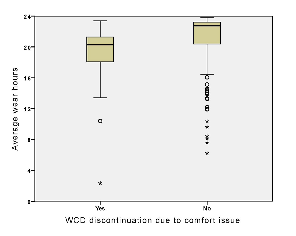 Figure 2 Distribution of mean wear hours by WCD discontinuation because of wear discomfort or other reasons.