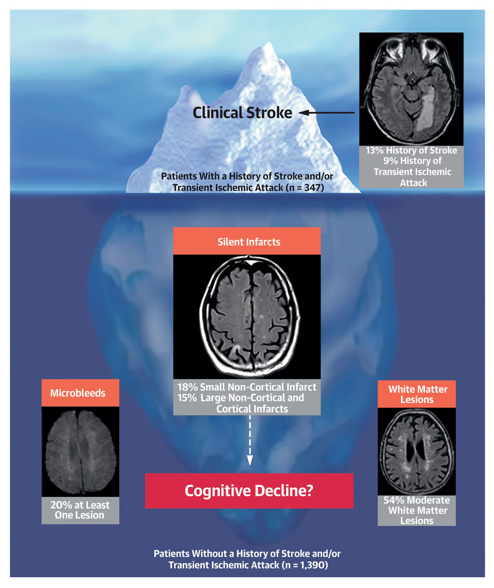 Figure 1 Potential relationships between overt and silent brain lesions and cognitive function in patients with atrial fibrillation (Reproduced with the permission of Elsevier from: Conen et al. J Am Coll Cardiol. 2019;73(9):989–99 [127]).
