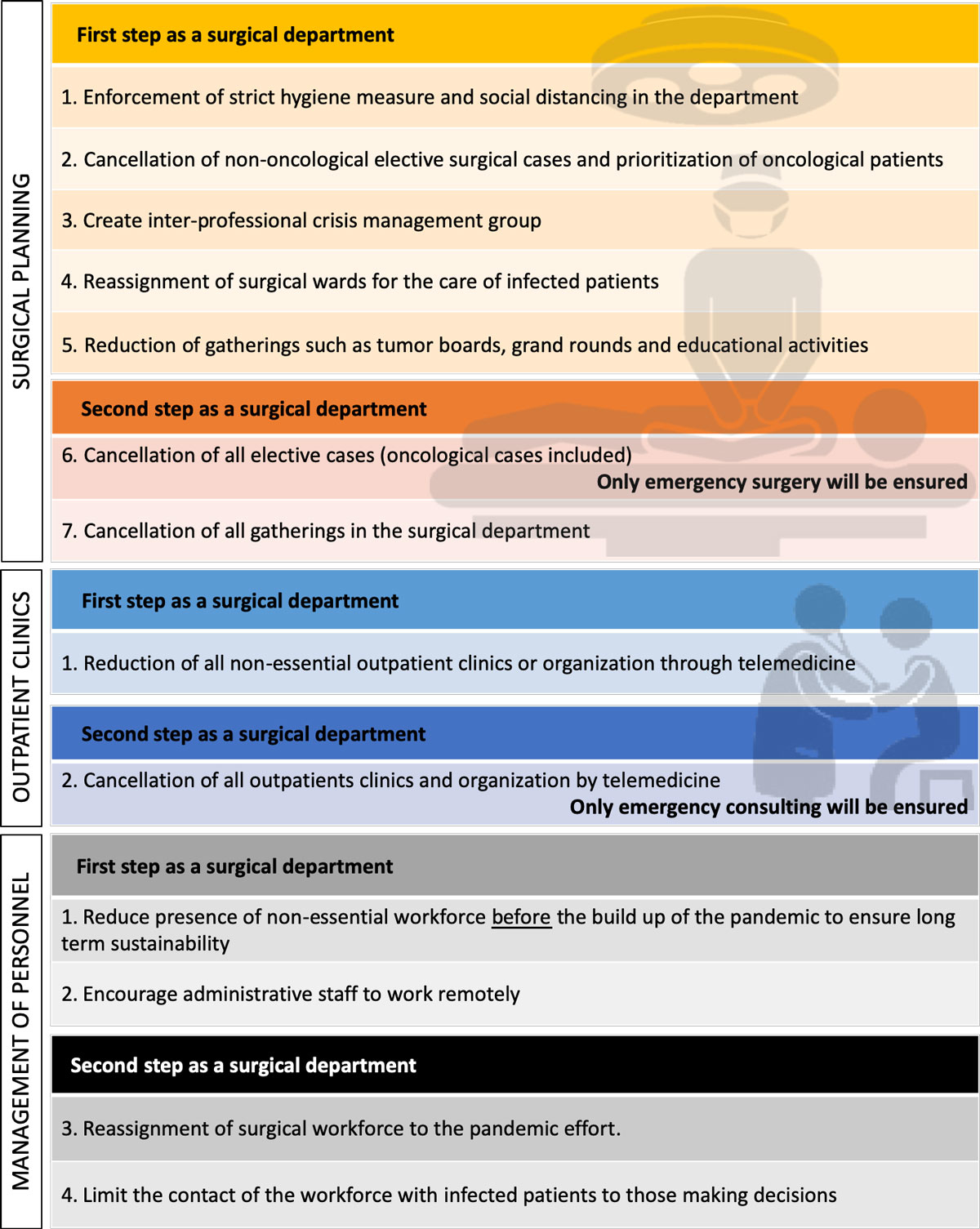 Figure 1 Blueprint for a response of a surgical department to a viral pandemic.