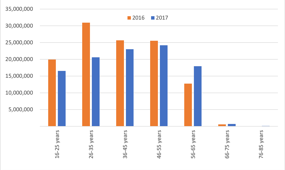 | 26–35 years | 30,288,144 | 2,576,513 | 19,975,936 | 1,685,649 |