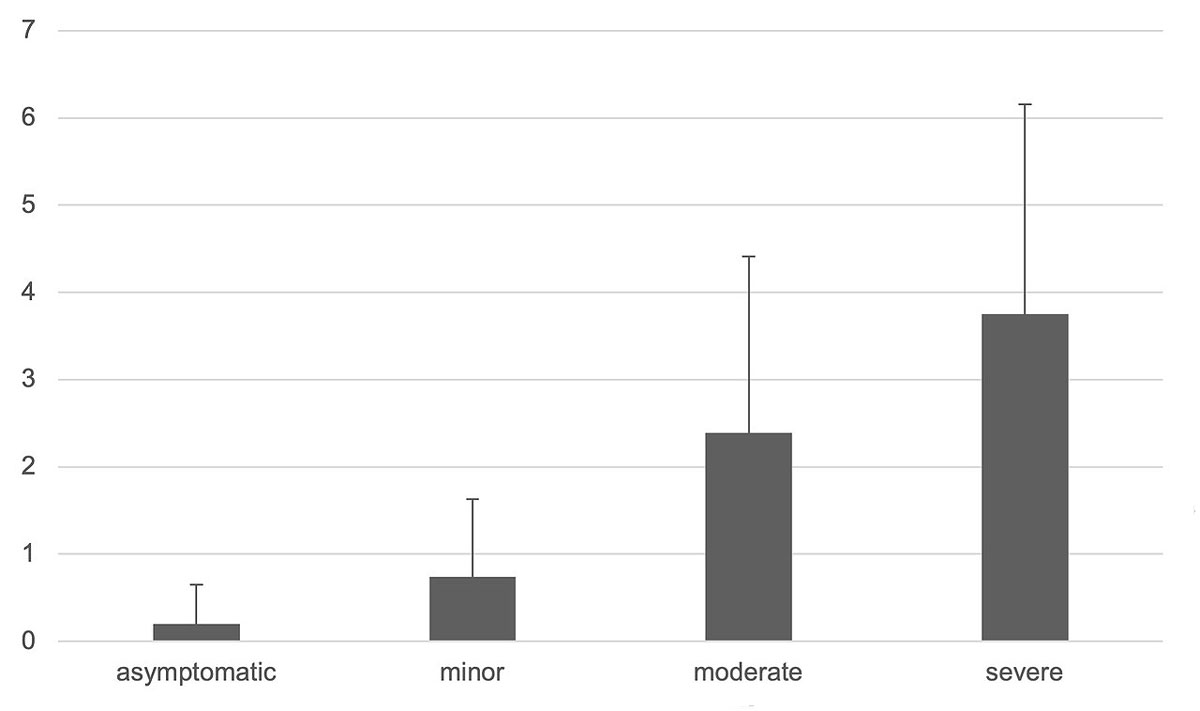 | Mild, n (%) | Moderate, n (%) | Severe, n (%) | |