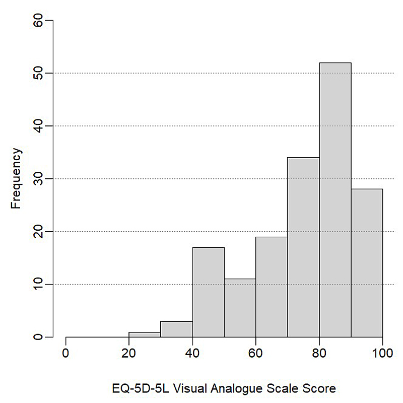 Figure 2 EQ-5D-5L Visual Analogue Scale (VAS) scores one-year after discharge after acute COVID-19 episode.