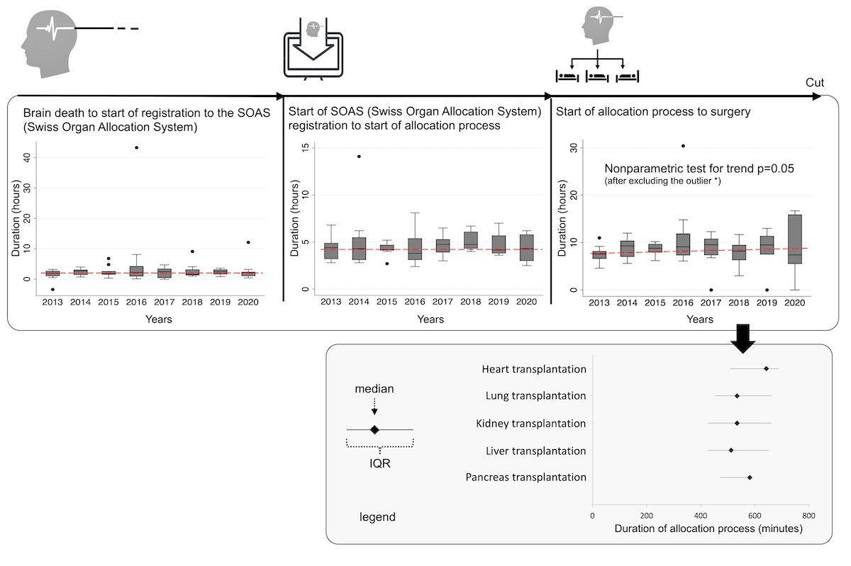 Finally, data on successfully transplanted organs as well as the duration of specific post-mortem procedures (such as activating local organ transplant coordinators, registration processes, assessment of organ quality and organ allocation processes) were extracted from the national database of organ donations.