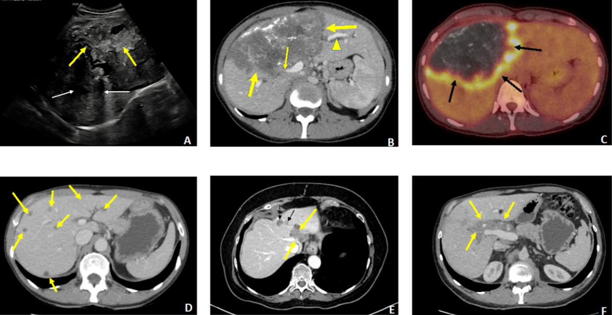 Instrumental treatments: Interventional radiology and/or biliary endoscopy procedures were performed in 4 (16%) patients: percutaneous drainage of dilated bile ducts or centro-parasitic abscesses, and endoscopic placement of biliary stents.