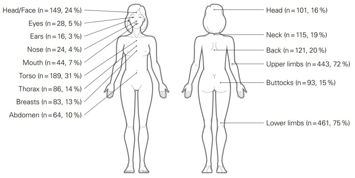 The medicolegal exam provides the necessary documentation, in the event of criminal proceedings and with the victim’s consent for the judicial authorities [39]. In 2018, the two regional university hospitals adopted the same paper format for the reporting of a medicolegal sexual assault, ensuring comparability between sites. We limited our analysis to the first four years, as a similar prospective study commenced in 2022. The data for this study were obtained from finalised sexual assault reports written and signed by the forensic doctor and gynaecologist who examined the patient and the heads of their unit, who review and sign every report. No patient follow-up was required.