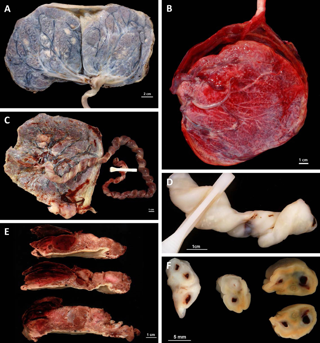 | Multiple pregnancy with same sex and macroscopically fused placentas | May be omitted if chorionicity was determined by ultrasound antenatally | Chorionicity (confirmation of monozygosity), feto-fetal vascular anastomoses |