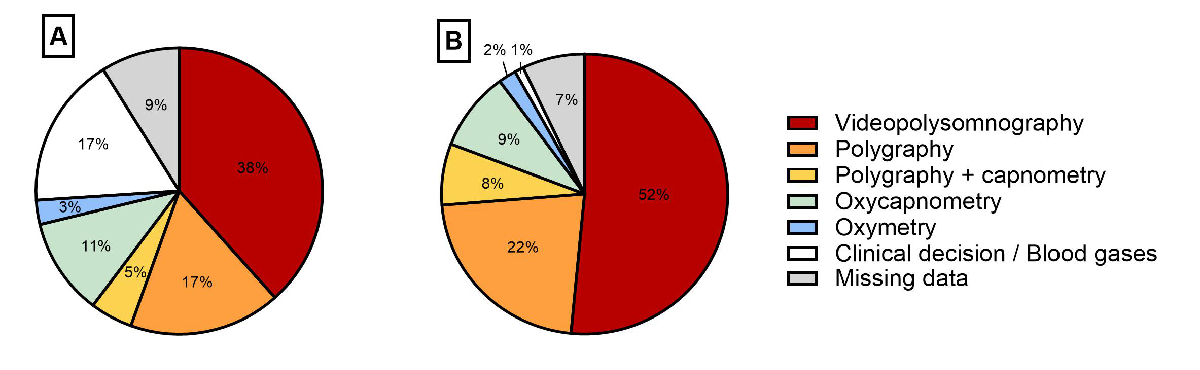 To characterise sleep-disordered breathing before elective home respiratory support initiation, most patients in our registry (86%) underwent polygraphy or polysomnography, in line with recommendations for sleep-disordered breathing investigations [9, 14]. Specific groups of patients, such as those with neuromuscular diseases, seem to be more likely screened using oxycapnometry, often used in this population to regularly monitor nocturnal gas exchange to detect the onset of hypoventilation as early as possible. In-depth studies of the tests performed, stratified by disease group, will be conducted in the future once the SwissPedHRS registry includes sufficient patients per disease to allow such analyses. We found a high variation in test results in our cohort, which could be explained by patients’ heterogeneity, underlying medical conditions and breathing disorder mechanisms. However, it also illustrates that sleep test interpretation is not only based on numerical results but also on respiratory curves and/or gas exchange trends. Clinical evaluation is also important and should be combined with sleep test results when deciding to initiate home respiratory support.