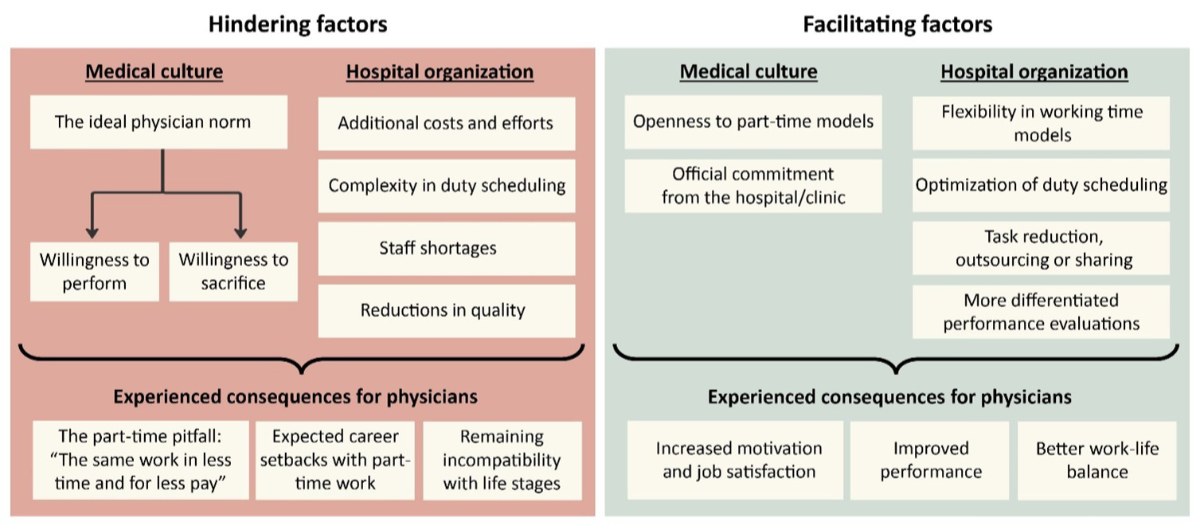 Figure 1Hindering and facilitating factors for the implementation of part-time working for physicians.
