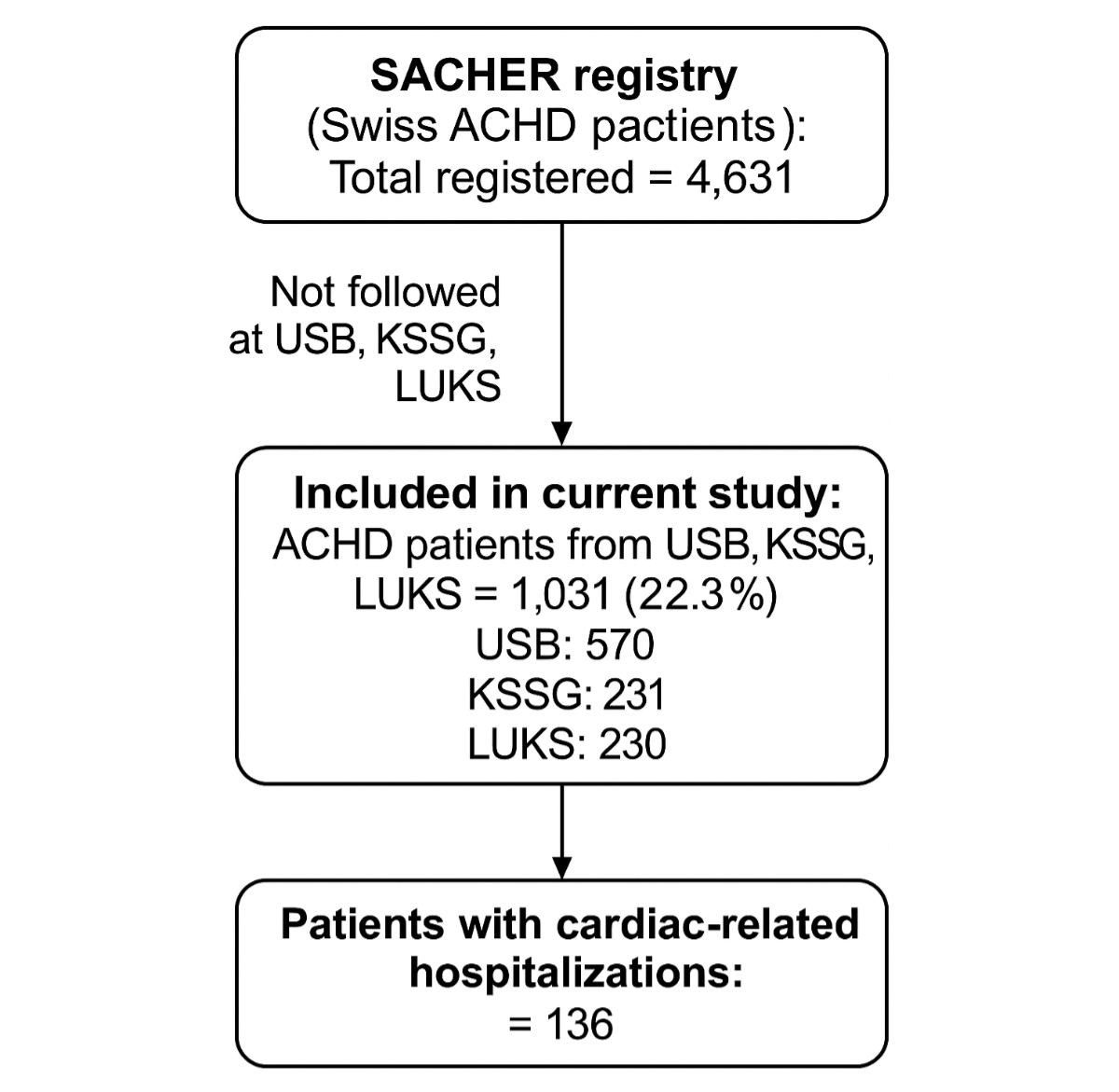 Since the publication of these national recommendations, a comprehensive description of cardiac-related hospitalisations, including their causes and management among patients followed at regional ACHD centres in Switzerland, has not yet been published. We therefore aimed to assess the extent of cardiac-related hospitalisations in adult congenital heart disease patients followed at Swiss regional ACHD centres. Such data may help in defining requirements for resource allocation for optimal care of patients with adult congenital heart disease in Switzerland.