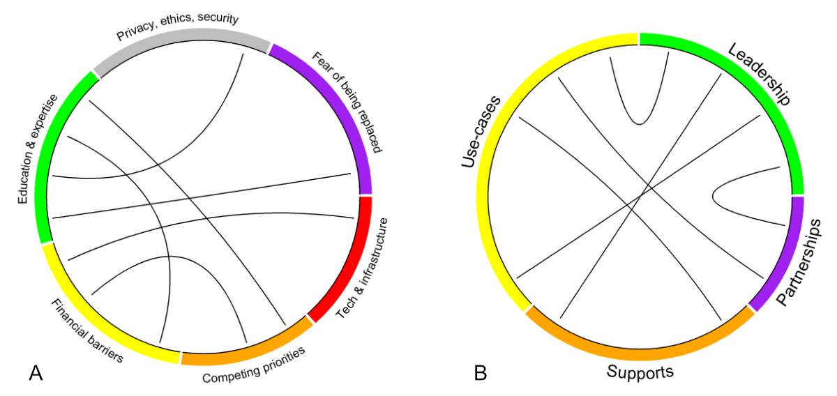 We believe our results are transferrable to industries beyond healthcare that are in a similar state of maturity around AI/ML adoption [39]. Although industry-specific challenges and use cases may arise, the same barriers and enablers would be relevant to applications of AI/ML. Examples include areas such as education where teachers are seeking to leverage AI to assist with day-to-day tasks like scheduling and planning [40]. An interview hosted by Ontario’s Information and Privacy Commissioner’s office on the use of technology in the classroom illustrates the risks around privacy and exploitation of public dollars by “persuasive technology” from third-party vendors integrating their AI products into existing infrastructure [40]. Many of these issues have direct corollaries to public sector health organisations, with AI Scribes being one prominent example and AI-enabled electronic medical records being another [41]. The AI strategy for Canada’s Federal Public Service 2025–2027, which is not specific to the health sector, has identified three of four sector-agnostic priorities with commonalities with our findings: 1) central AI capacity (e.g. identifying use cases, assessing risk); 2) policy, legislation and governance relevant to the AI era; and 3) talent and training [42].