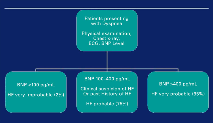 The use of biomarkers to detect HF in the ED is based on the three observations: dyspnea is very frequent in the ED, AHFS is a major cause of acute dyspnea, and clinical signs such as ECG and chest X-ray may not always immediately rule AHFS in or out. Most of the diseases that lead to acute dyspnea need immediate and appropriate treatment: for example delaying antibiotic treatment and giving diuretics for a pulmonary infection may further harm the patient; optimal use of biomarkers can minimize harmful effect of mistreatment [7].