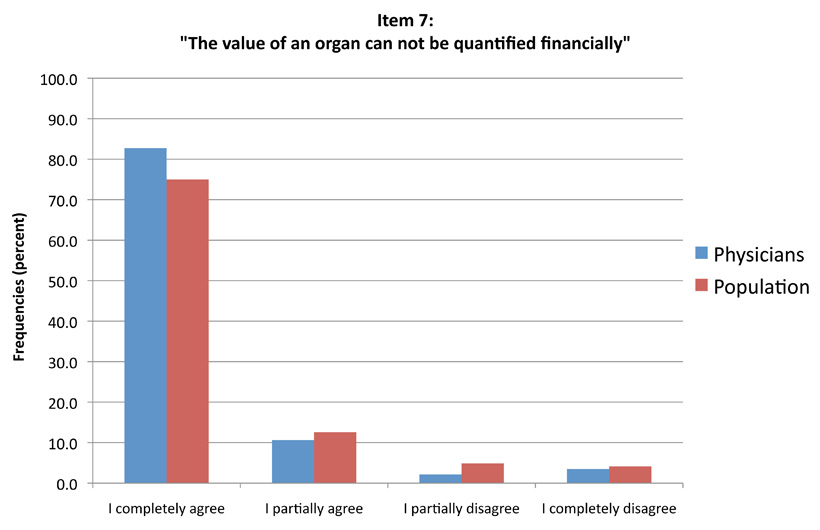 These results are interesting in several respects. It was shown that the respondents of both groups agreed with the need to acknowledge the act of donating organs in order to increase the national organ donation rates. Despite this fact, physicians and inhabitants are globally unfavourable of the incentives suggested for this questionnaire. These data are consistent with studies showing that a reward for organ donation is perceived as shocking or non pertinent by people [14, 15]. The reason for this reluctance could be the following: on the one hand, physicians seem to consider that organ donation is a selfless act. On the other hand, inhabitants do not think that the value of an organ can be quantified. The fact that physicians do not have unanimous opinions on this issue does not necessarily mean that they think that organs have an exchange value: it is possible that in the current Swiss context, where health costs are the subject of heated debates, physicians are more sensitive than inhabitants to the costs inherent to the transplant medicine.