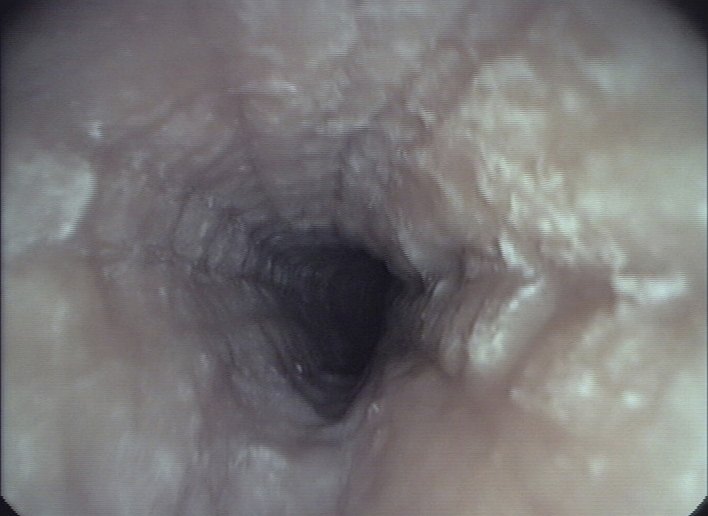 Upper endoscopy is the first diagnostic step in evaluating individuals with dysphagia [11]. Although there is neither a pathognomonic endoscopic sign nor a typical pattern of abnormalities associated with EoE, a considerable number of different endoscopic features may be observed. These signs usually appear in random combination and represent evidence of active inflammation with mucosal edema (furrows, exudates, etc.) or chronic inflammation with tissue remodelling (crêpe-paper mucosa, corrugated rings, stricture) (fig. 1) [4, 5]. These abnormalities occur in children and adults, but experience suggests that evidence of active inflammation occurs more often in children whereas manifestations of chronic inflammation are observed more frequently in adults. Of note, if present these signs are suggestive of the diagnosis of EoE, but endoscopy is often confusing or even misleading and a history of dysphagia is a clear indication for biopsy sampling, even in an normal appearing esophagus [4, 5].