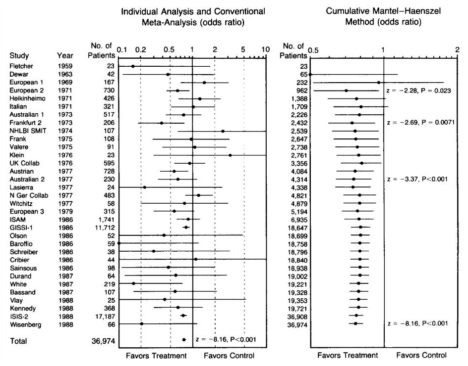 19 Lau J, Antman EM, Jimenez-Silva J, et al. Cumulative meta-analysis of therapeutic trials for myocardial infarction. N Engl J Med. 1992;327:248–54.