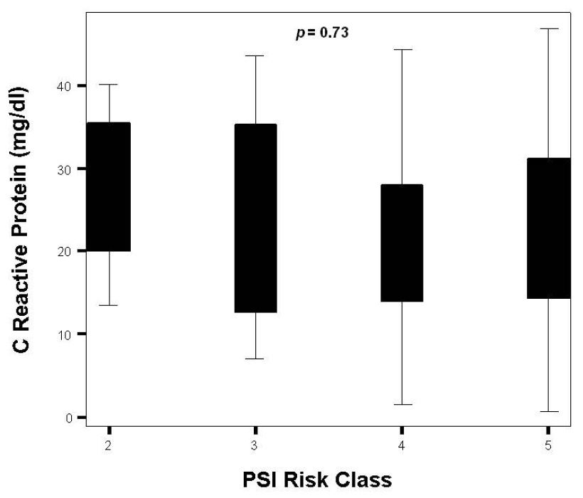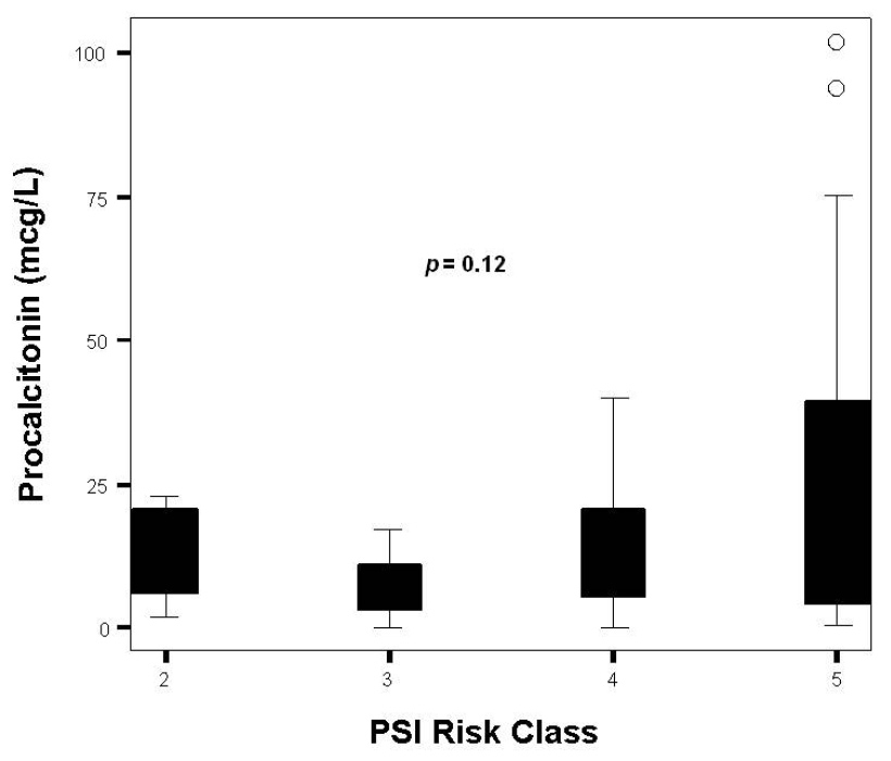 Biomarkers are becoming the way to improve prognostic accuracy of clinical scores. PCT is the marker that has been most widely investigated and most frequently used in CAP. In severe sepsis and septic shock patients, PCT values on admission have better prognostic utility than other inflammatory markers such as CRP [19]. In our study neither PCT nor CRP was adequate to differentiate between different severities of CAP, as defined by PSI or CURB65, and risk of death. These results coincide with other studies which have shown the limited accuracy of PCT in predicting mortality risk in different infections including CAP, when used as a stand-alone test [20–23].