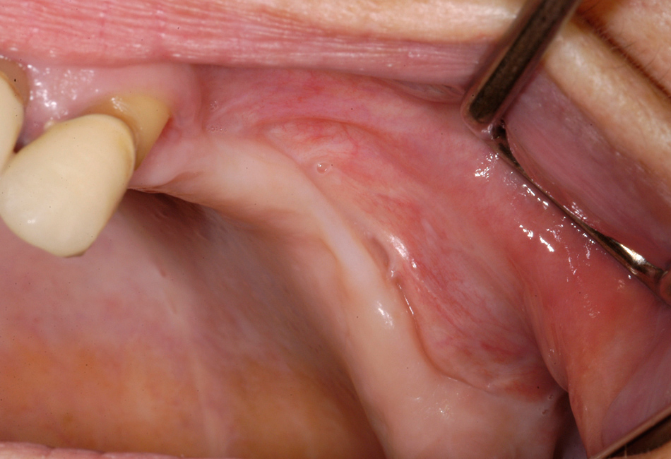 Same patient as figure 2 shows the situation after surgical treatment of BRONJ with complete remission without any remaining dehiscence of the soft tissue.
