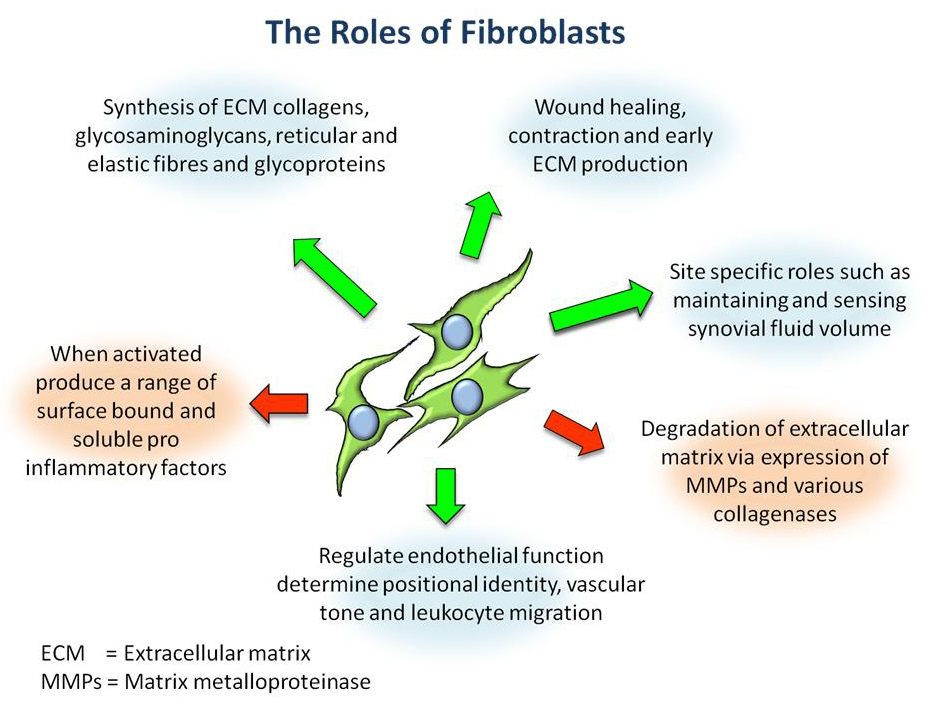 Overview of the diverse roles of stromal fibroblasts within connective tissues.