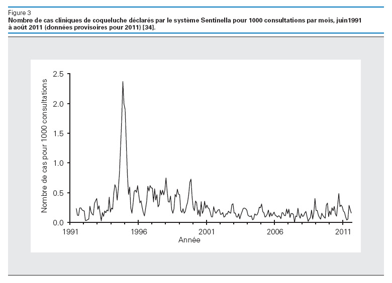 32 OFSP. Coqueluche/Pertussis. Journal [serial on the Internet]. 2012 last accessed July 11, 2012: Available from: http://www.bag.admin.ch/themen/medizin/00682/00684/01082/index.html?lang=fr.