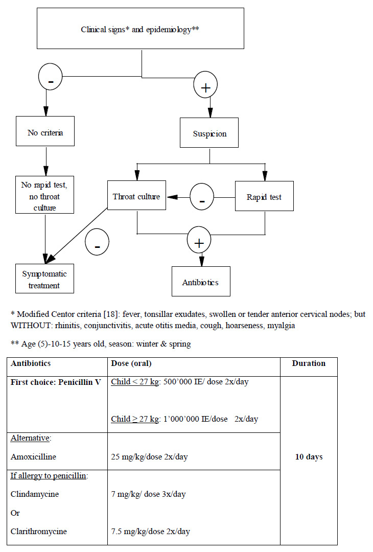 Current recommendations for the management of acute pharyngitis by the Pediatric Infectious Diseases Specialists of Switzerland ( http://www.pigs.ch ).