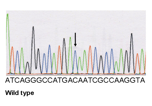 C Electrophoregrams of the desmoplakin mutation and of wild type: a heterozygous variant in DSP, c.1691 C>T, was identified, resulting in the missense mutation p.Thr564Ile at a heterozygous state.
