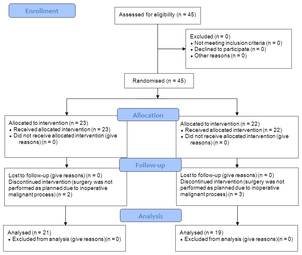 The study included 45 patients undergoing major abdominal surgery under general anaesthesia in University Hospital Dubrava, during a six months period, between February and July 2011.