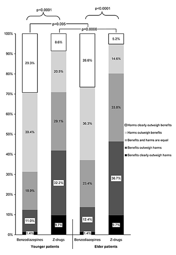 Perceptions of GPs on overall benefits and harms of benzodiazepines and Z-drugs in younger and in elderly patients.
