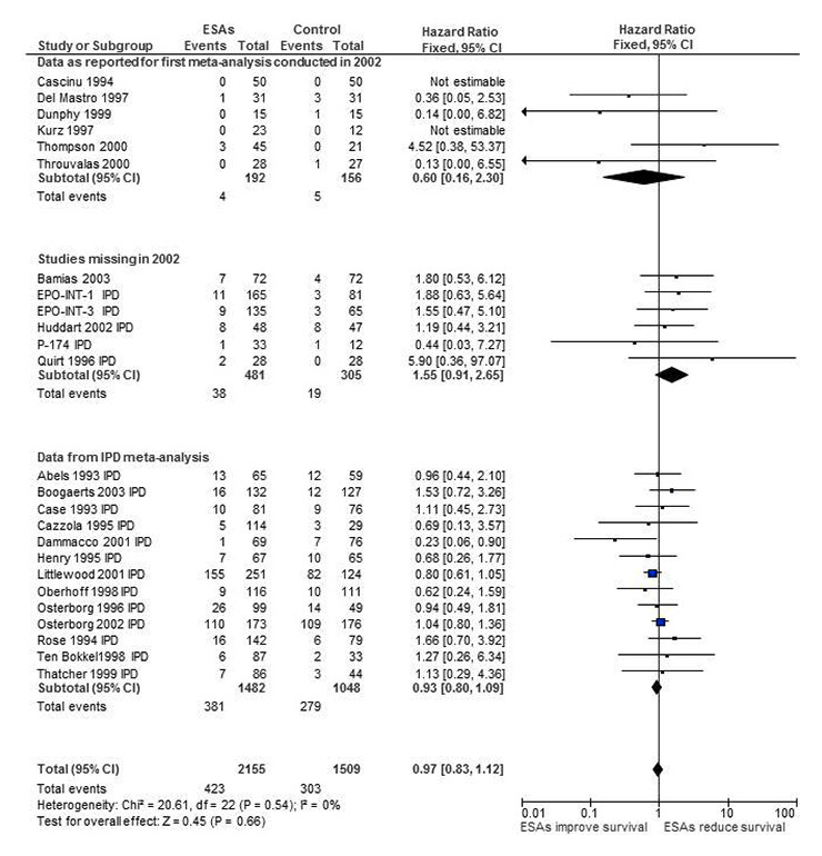 14 Bohlius J, Wilson J, Seidenfeld J, Piper M, Schwarzer G, Sandercock J, et al. Erythropoietin or darbepoetin for patients with cancer. Cochrane Database Syst Rev 2006;3:CD003407.