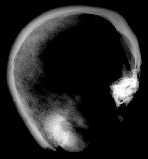 The Hochdorf burial (fig. 1) was found in 1887 during construction work. Apart from a short written description, there is no documentation [1, 2]. According to this text, the individual lay supine with the arms stretched alongside the body. The grave was aligned in south-north direction. The head pointed north, which is typical for the late Iron Age. Alongside the head, there was a large stone. Traces of a coffin or other constructions related to the funeral were not mentioned, but must be expected. The individual in the Hochdorf grave has a skull anomaly (fig. 2).